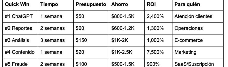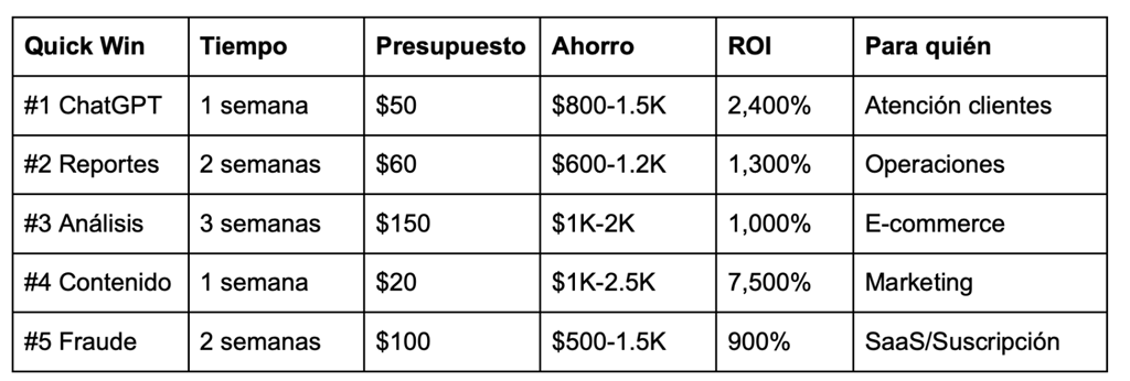 Quick Win #1: ChatGPT para atención al cliente (Ahorro: $800-1,500/mes)